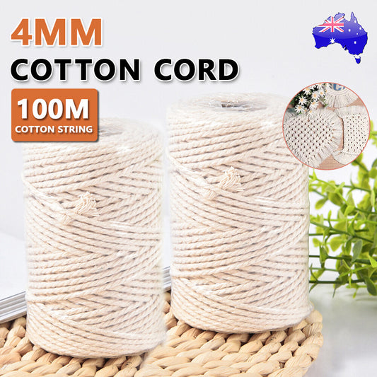 4Mmx100M Natural Cotton Rope Cord String Twisted Beige Craft Macrame Artisan AU